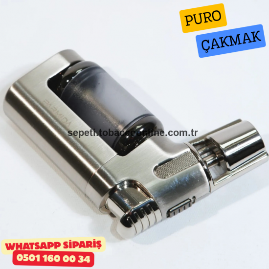 Parmida Delicili Puro Çakmak, güçlü jet flame alev sistemi ve entegre puro delicisi ile pratik ve profesyonel bir kullanım sunar. Tek jet alev yapısı, puro ayağını kontrollü ve dengeli şekilde yakmanıza yardımcı olur.
