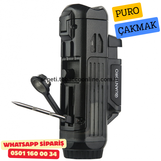 Quantoro Delicili İğneli Çift Jet Alev Puro Çakmak (Siyah)