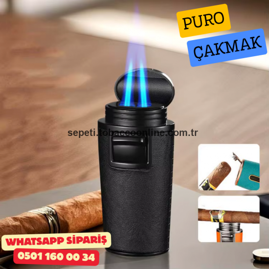 Etiketler: Siyah Deri Kaplamalı Çift Torch Puro Çakmak,