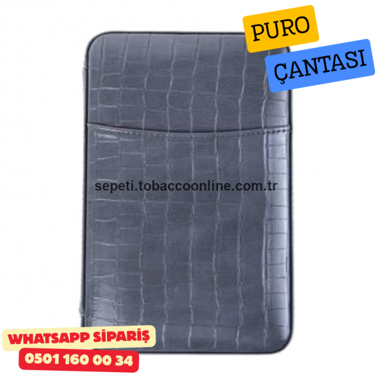 Timsah derisi desenli gri deri puro taşıma çantası, şıklık ve fonksiyonelliği bir araya getiren kompakt bir seyahat humidorudur. Zarif dokulu dış yüzeyi ve modern tasarımı sayesinde hem günlük kullanım hem de seyahatler için ideal bir aksesuardır.